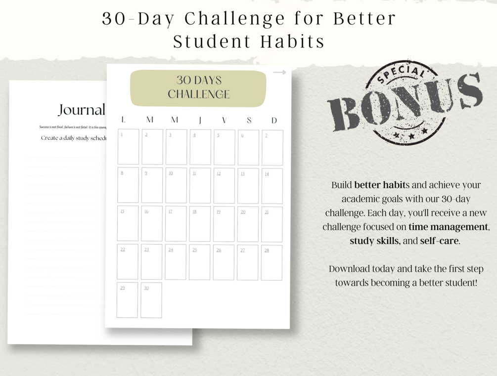With features like the Cornell method, Pomodoro method, Feynman method, spaced repetition method, PQR4 method, color-coded notes, monthly/weekly/daily trackers, a class and grade tracker, and a 30-day journaling challenge, our planner includes all the tools you need to succeed. Whether you're a high school student, college student, or graduate student, our digital study planner can help you stay focused and motivated throughout your academic journey.