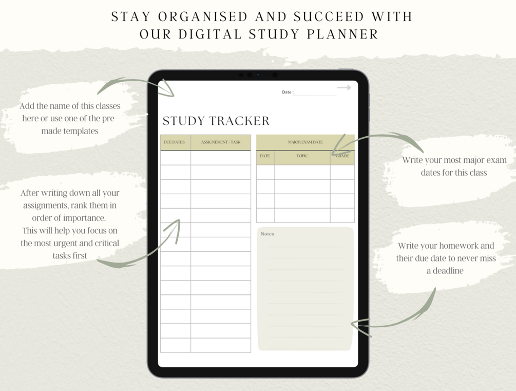 Look no further than our comprehensive digital study planner. This powerful tool is designed to help you stay organized and on top of your studies, so you can achieve your academic goals with ease.